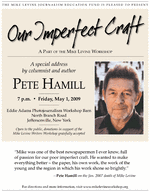 The Pete Hamill event will be held at the Eddie Adams Farm, North Branch Road, Jeffersonville, NY, for further directions or for more information, visit www.mikelevineworkshop.org.
